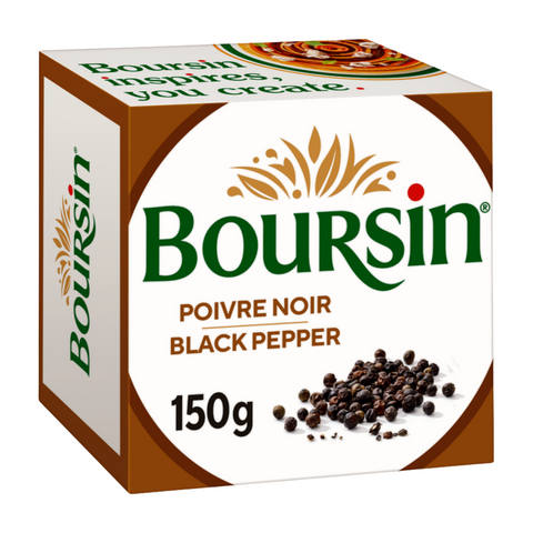 Soft white Boursin cheese packed with black peppercorns to give an extra kick to your taste buds.