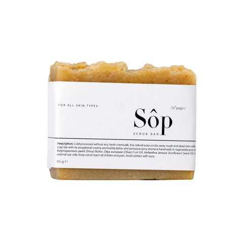Cold processed without any harsh chemicals, this natural soap scrubs away rough and dead skin cells, leaving skin awash in black pepper powder designed to gently exfoliate, rejuvenate and remove toxins from the skin. This antioxidant-rich soap bar with its exceptional creamy and bubbly lather and sensuous spicy aroma is handmade to regenerate your skin with a blend of botanical oils and shea butter, a luxurious conditioning ingredient.