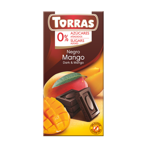 Torras Sugar-Free Dark Chocolate with Mango blends the deep, robust flavor of dark chocolate with the exotic sweetness of ripe mango. A tropical twist on a sugar-free classic that's both bold and refreshing.