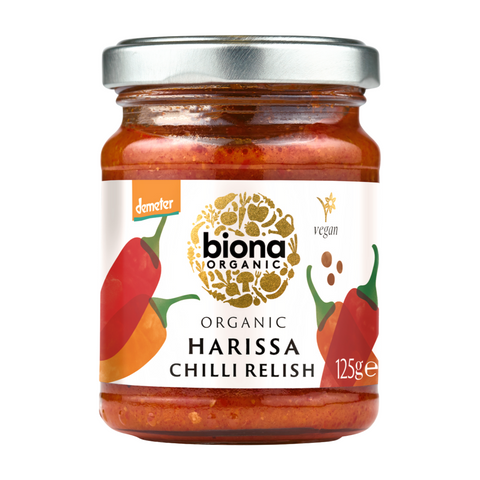 A spicy, wonderfully aromatic paste, our Biona Organic Harissa Chilli Relish is just the thing to waken your taste buds. With its fiery red colour and fragrant aroma, this tempting relish can be added to grain dishes, soups and casseroles to bring about new worlds of flavour.
