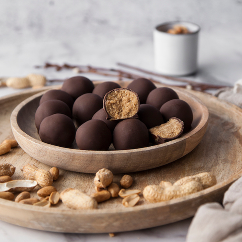 | Peanut and dark chocolate energy balls sweetened with honey |