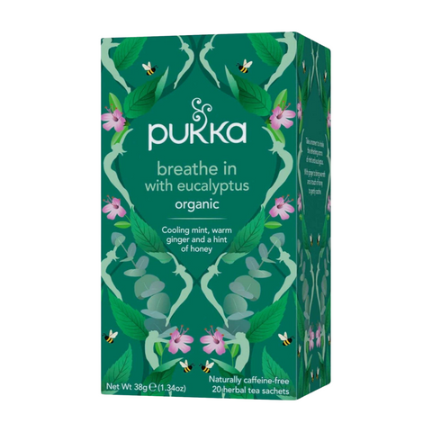 Clear your senses with our expertly blended Breathe In tea. Find a moment of relief with the refreshing aroma of mint and eucalyptus, the warming sensation of ginger and the soothing support of honey.
